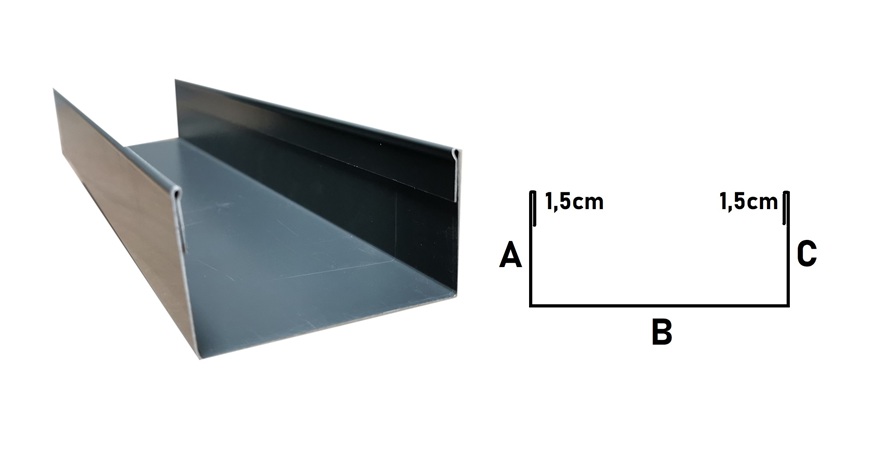 Ceownik zewnętrzny wzmacniany jest obróbką blacharską w kształcie litery C, wyposażoną w obustronne zawinięcia o szerokości około 1,5 cm. Zawinięcia usztywniają profil oraz eliminują ostre krawędzie, poprawiając bezpieczeństwo montażu.