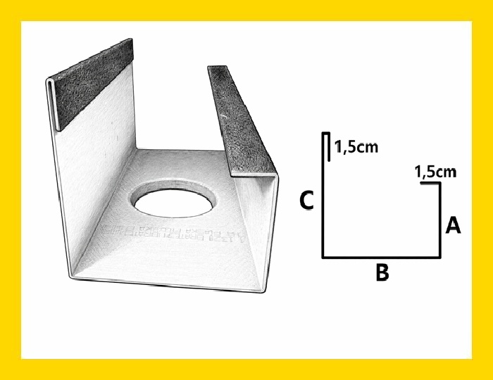 - Wymiar C musi być co najmniej 2cm większy od Wymiaru A, jest to spowodowane sposobem montażu rynny kwadratowej doczołowej.