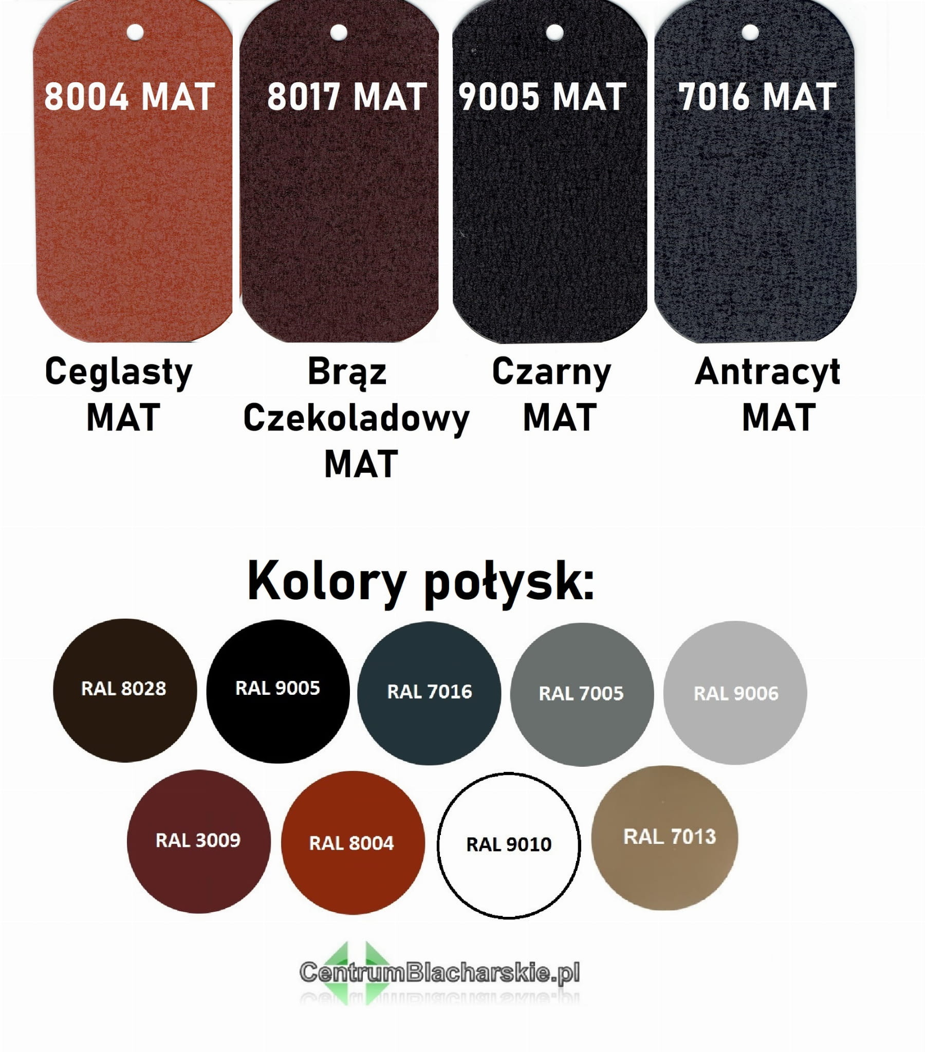 | Powłoka | MAT poliester (chropowata, niejednolita) |