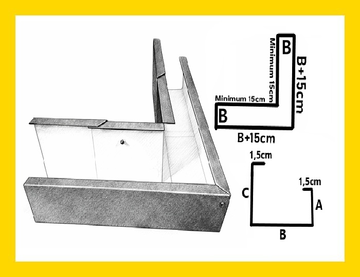 Wymiar C musi być co najmniej 2cm większy od Wymiaru A, jest to spowodowane sposobem montażu rynny kwadratowej doczołowej.