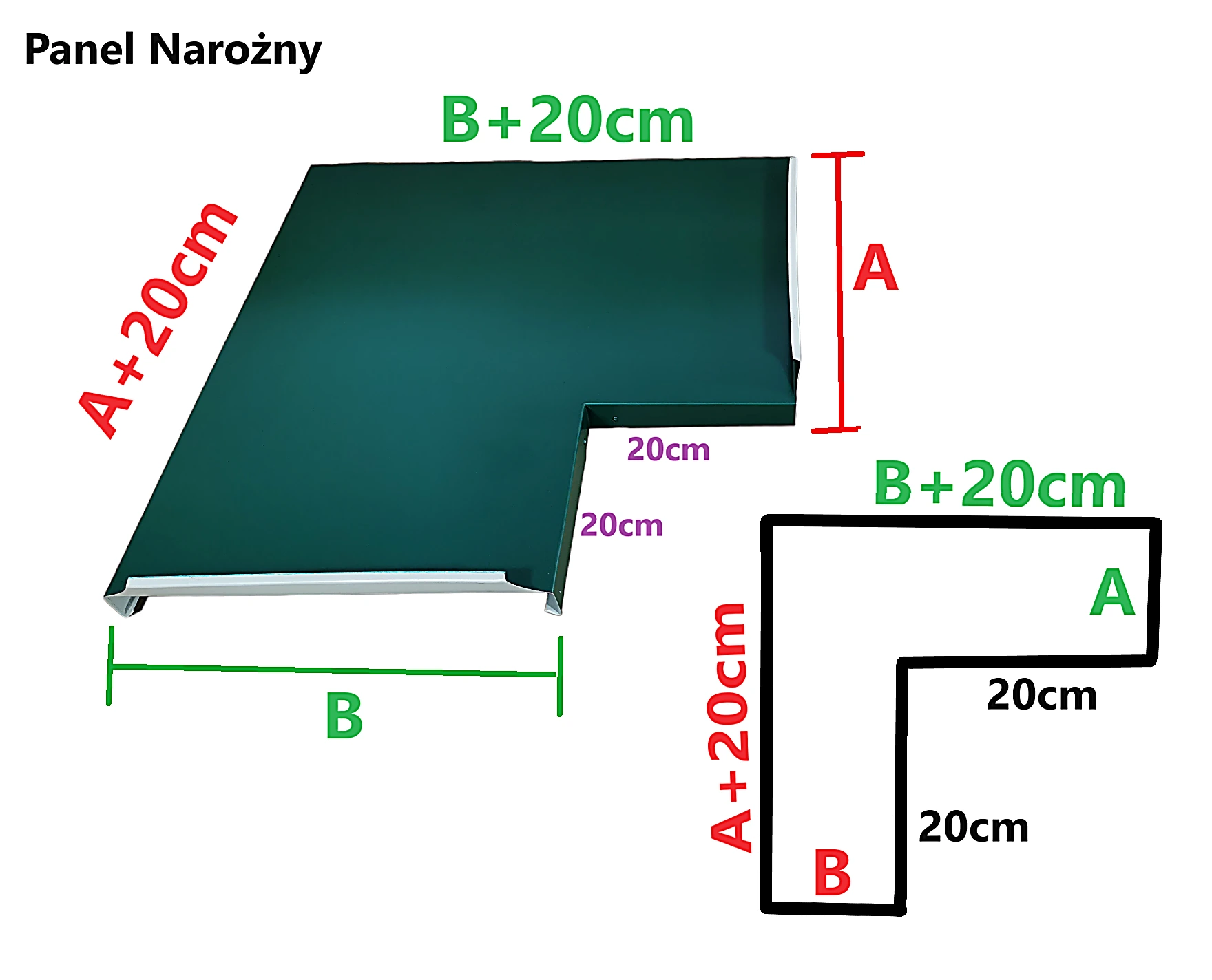 - Wymiar A i B do wyboru określa szerokość attyki na rąbek