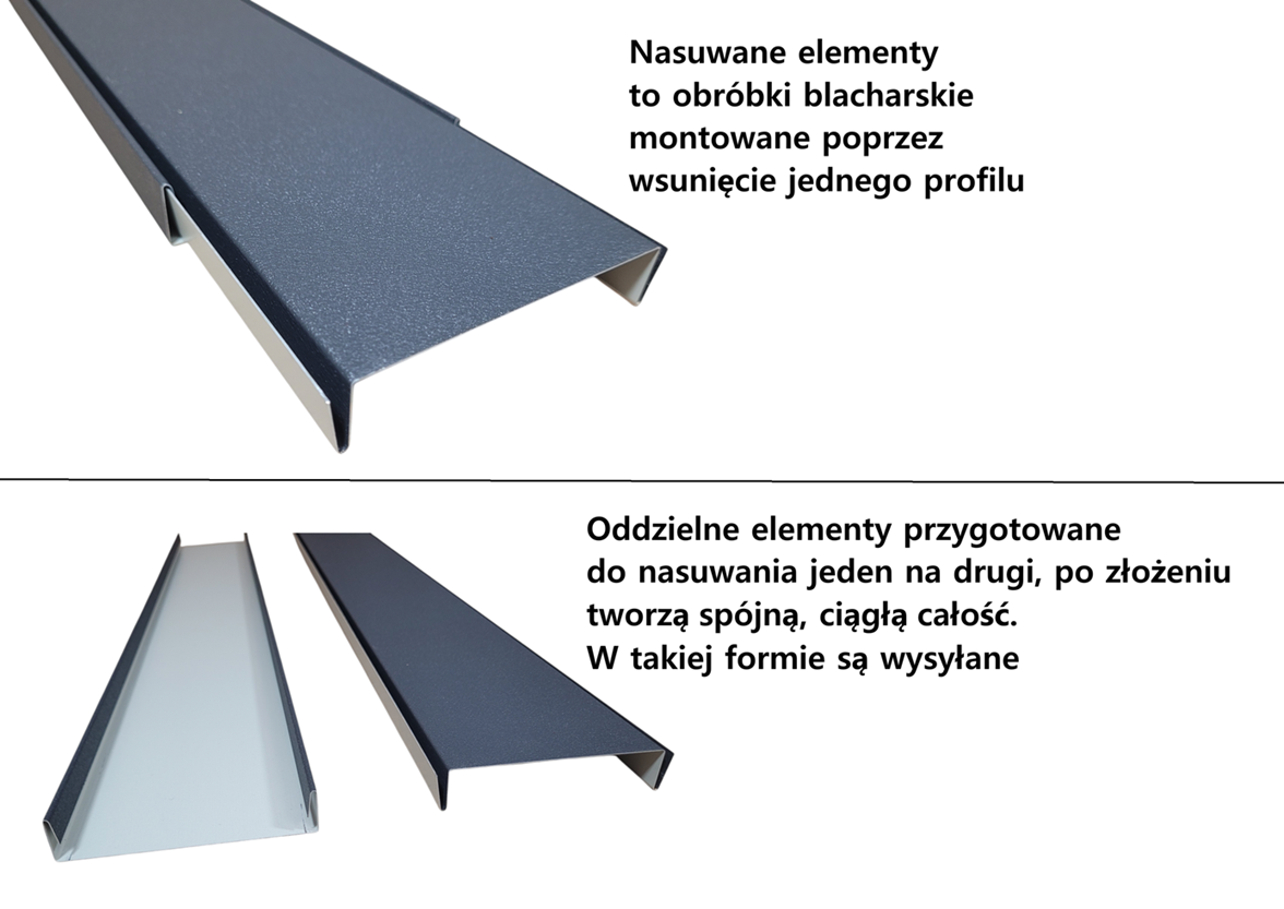 Sztacheta nasuwana dwuczęściowa to element ogrodzeniowy wykonywany z blachy giętej, w którym dwie części profilu łączą się poprzez nasunięcie, tworząc zamknięty przekrój. Takie rozwiązanie pozwala uzyskać wysoką sztywność elementu bez konieczności stosowania spawania, przy zachowaniu estetycznego wykończenia powierzchni.