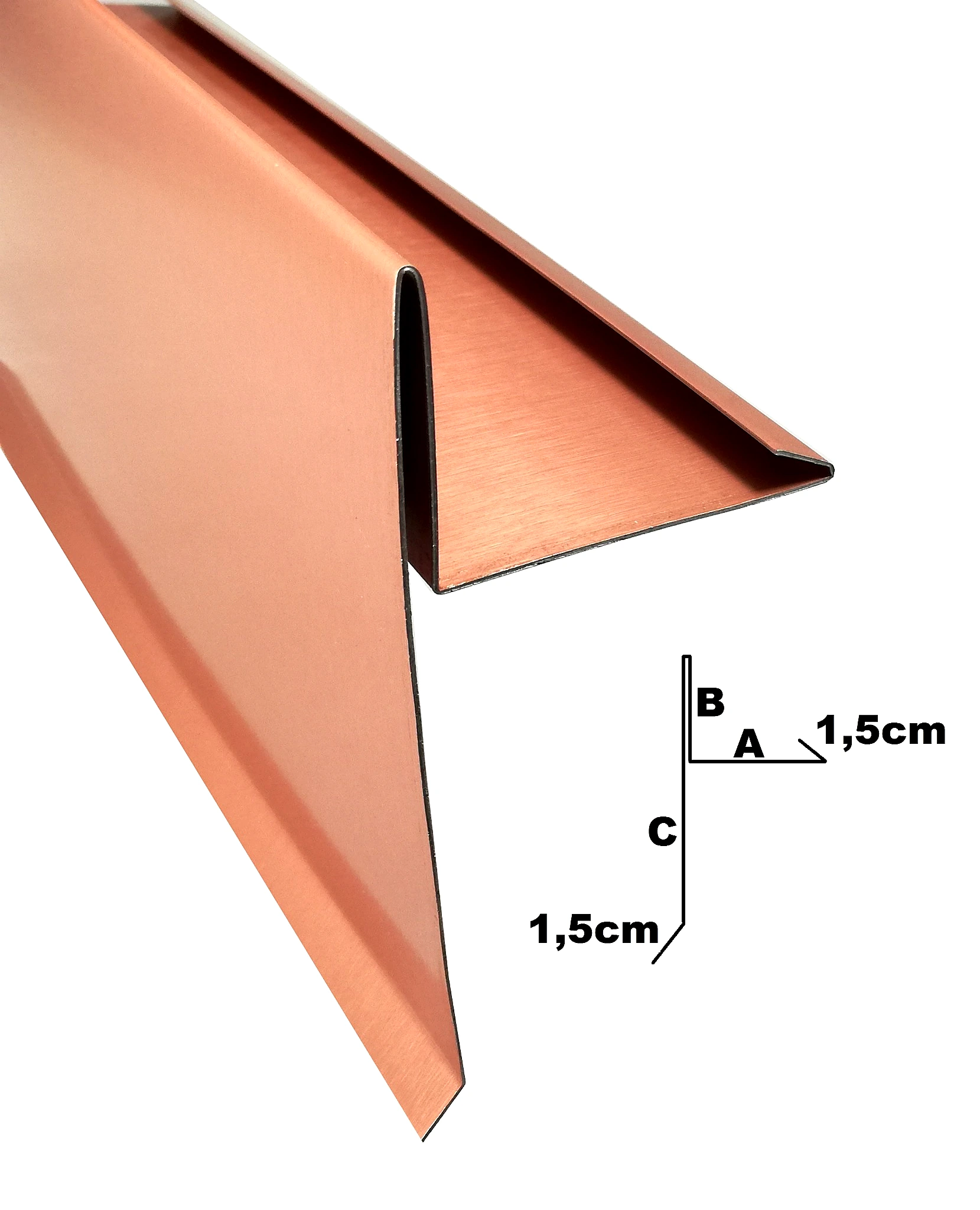 Wiatrownica pod dachówkę ceramiczną lub cementową z blachy miedzianej. Zarówno pod dachówkę zakładkową jak i dachówkę karpiówkę (krytą w łuskę lub koronkę). Z powodzeniem zastępuje ona dachówki skrajne oraz zabezpiecza pokrycie dachowe przed wiatrem.